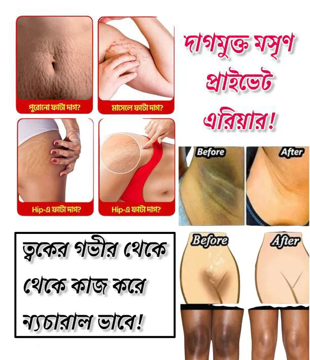মাতৃত্বকালীন ফাটা দাগসহ যেকোন ধরনের কাঁটা দাগ, ফাটা দাগ রিমুভ করে একদম ত্বকের গভীর থেকে।
